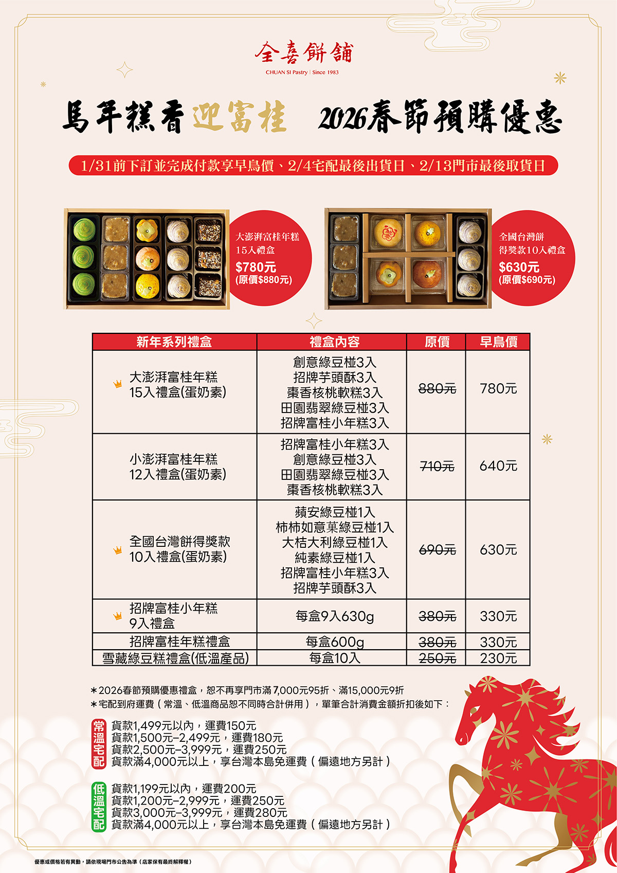 2026/2/4 (三)宅配最後出貨日